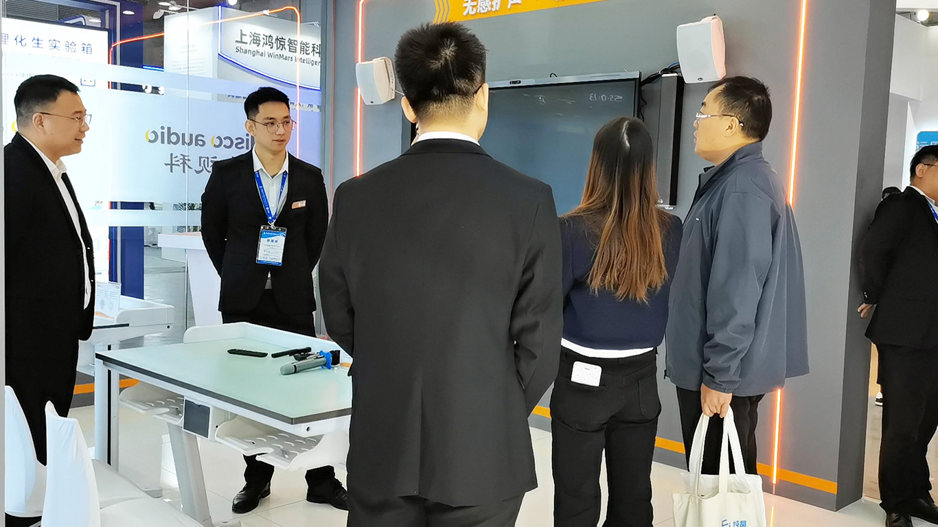 • 球速(中国)展区在整个展期内始终人流如织,气氛热烈。公司以“声动互联,智慧教学”为主题,精心打造了一个沉浸式、互动化的智慧教育体验空间。从引人入胜的LED大屏动态展示,到可以亲身体验的各类智能终端,球速(中国)全方位、多维度地展示了其在教育科技领域的深厚积累与突破性创新。