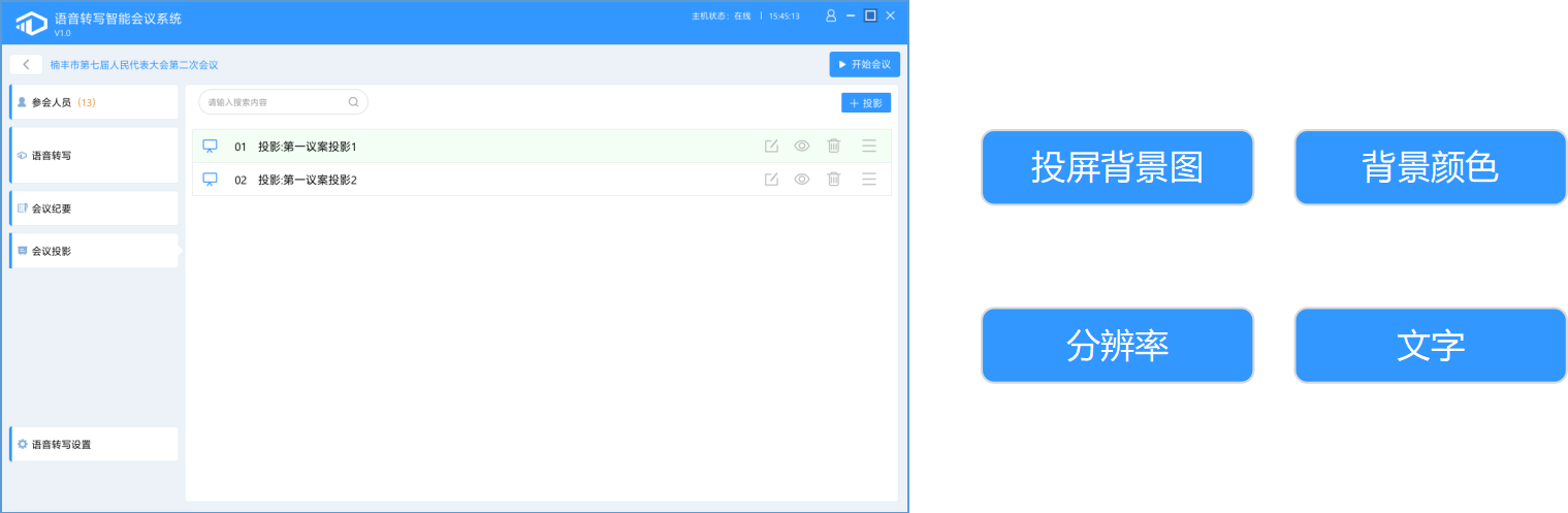 角色分离:实现在会议过程中对会议的发起方、参与方、主席、主持人、秘书等将各方发言的内容进行角色分离并自动实时识别成文字,并把语音转写成的文本以字幕的形式投放到大屏显示。