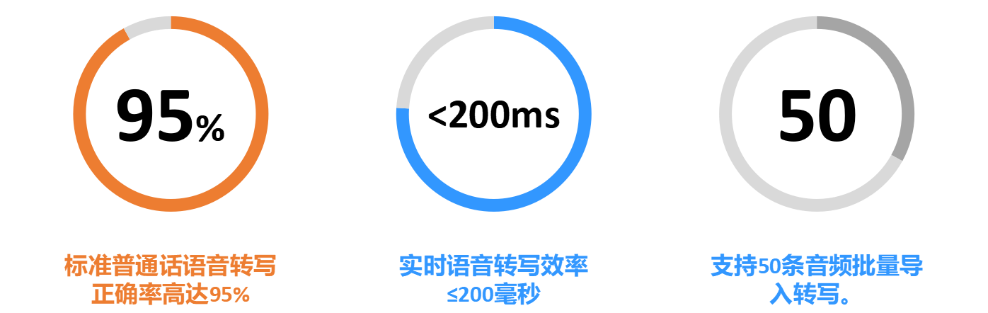 2.转写准确率高:中文普遍话≥95%,Native 英文≥90%