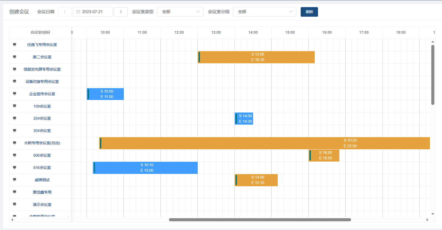 1、显示当日所有会议室预订情况、会议室使用状态