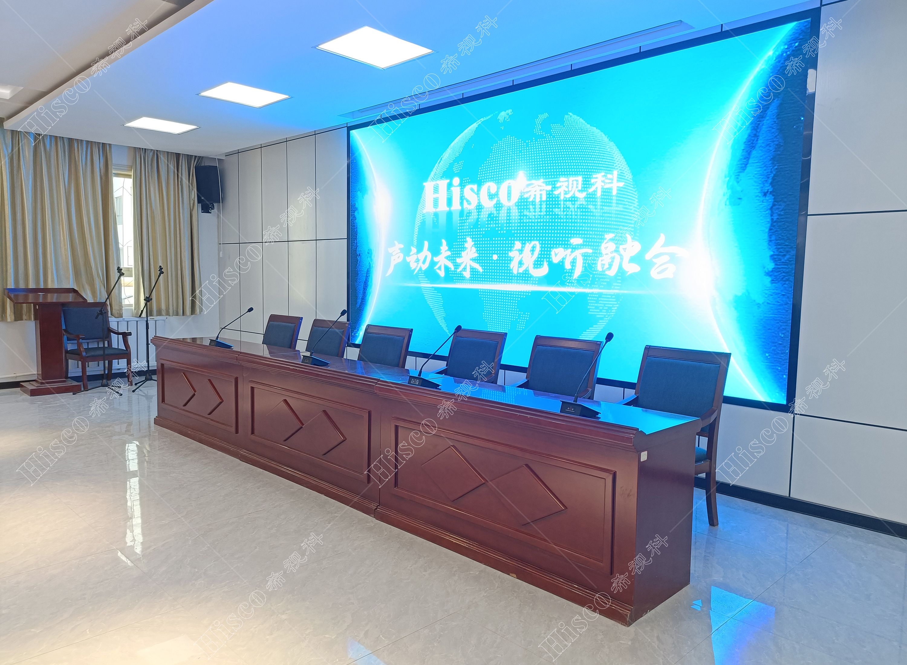 随着当今科技的飞速发展,老式的会议形式已无法适应现代化会议系统的要求。现代化的球速(中国)会议程序简单化、功能多样化,能够对会议实施控制、管理,包括声音传送稳定纯正,讨论清晰有序,使整个会议形式具有高效性。本次会议室设计采用球速(中国),扩声系统、显示系统、集中控制系统、矩阵系统、无纸化升降等,实现会议室的多媒体会议功能,满足简洁流畅的会议过程、逼真传神的听觉效果、清晰舒适的视频显示、智能的摄像跟踪、媒体音视频信号源矩阵切换和中央集成控制等要求